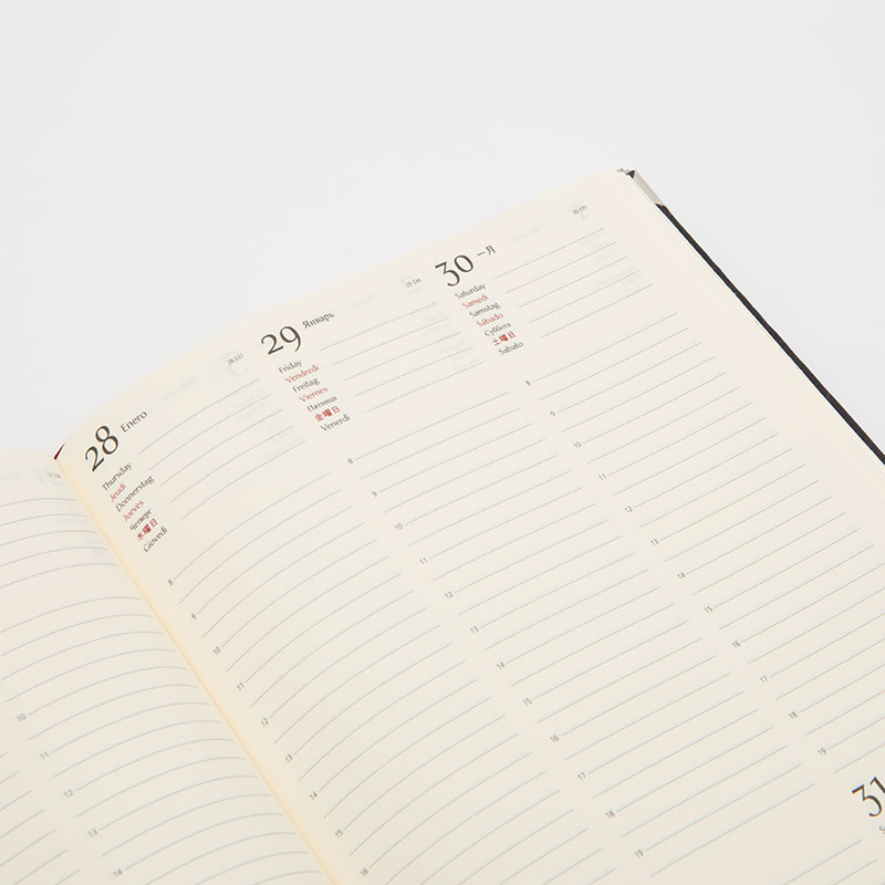 Elegante e di classe, questa agenda settimanale personalizzabile in stile A5 è il modo migliore per stare al passo con i tuoi appuntamenti, ricordare i compleanni i familiari ed amici e programmare le riunioni con stile. La vista orizzontale ti dà molto spazio per annotare la gestione di ogni giorno o registrare il tuo umore, la dieta e altri aspetti del tuo stile di vita. Nella tua agenda con foto 2026 ci sono anche informazioni aggiuntive come le festività nazionali* e anche mappe, rendendola un utile prodotto da visitare. Stampato sul davanti e sul retro con le tue foto, non è solamente pratica, ma è anche un ricordo unico di tutto l'anno. Guarda indietro con un sorriso sul viso e mantieni il tuo diario personalizzato per sempre.