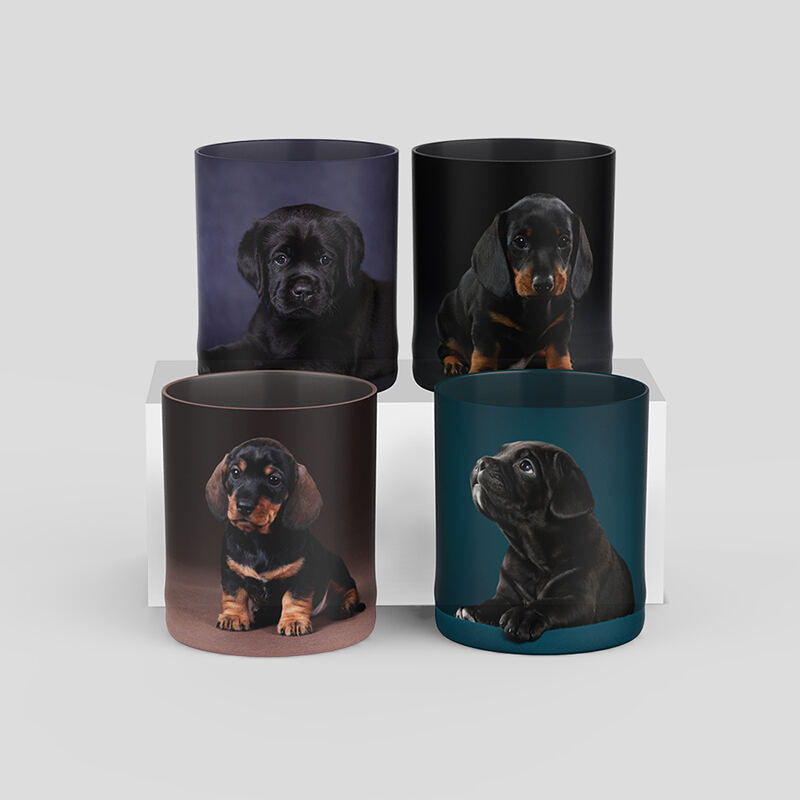 Il cristallo satinato fa risaltare i colori accesi e le grafiche ad alto contrasto. Per ottenere il massimo, scegli tonalità vivaci o un testo nero su fondo chiaro. Ricorda che il tuo motivo avvolge l'intero bicchiere: se usi blocchi di colore scuro potrebbe comparire una sottile linea chiara nel punto di giuntura.
