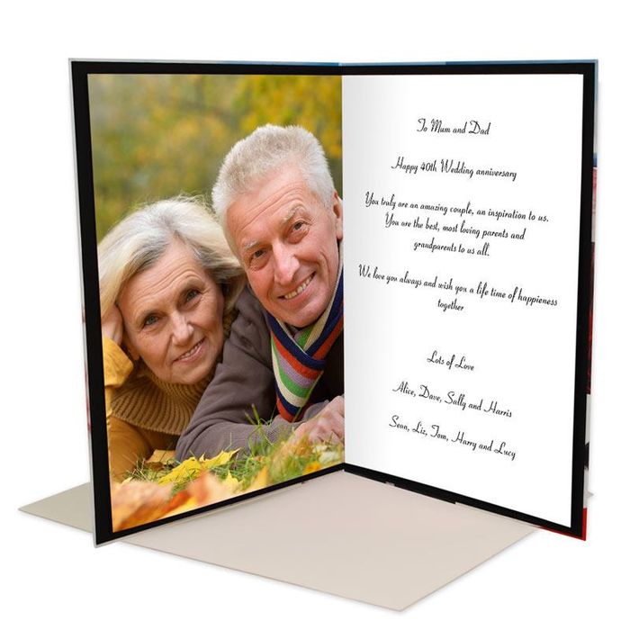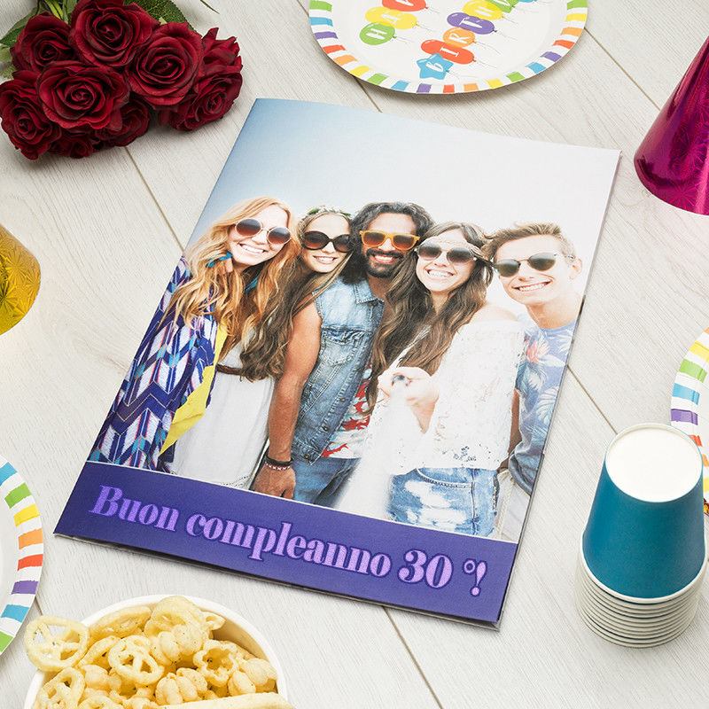 Dai sfoggio della tua creatività realizzando un biglietto d'auguri personalizzato che lascerà senza parole i tuoi amici, colleghi, genitori o partner. Per dire grazie ad una persona che ci ha sempre sostenuto, per augurare "Buon compleanno" ad un amico o "Felice anniversario" ai propri genitori, per lasciare a bocca aperta il proprio partner il giorno di San Valentino o per emozionare un caro collega che sta cambiando lavoro, ogni occasione merita il suo biglietto d'auguri speciale e personalizzato. I biglietti d'auguri sono disponibili in due formati, ciascuno caratterizzato da una diversa opzione di stampa. Il biglietto d'auguri personalizzato formato Grande A4, è adatto a ospitare fino a 30 firme/dediche. Ideale per eventi, quali un buon viaggio o un buon compleanno e come ricordo eterno di un lieto evento, magari inaspettato per il ricevente. La stampa viene effettuata direttamente su cartoncino per i 4 lati personalizzabili. La qualità delle immagini e testi stampati è impeccabile. Il formato Maxi A3, permette mediamente l'apposizione dai 30 ai 100 invitati ed è particolarmente indicato per eventi importanti come lauree o matrimoni. La stampa su fronte e retro del biglietto avviene su tessuto satinato che viene poi installato su supporto in cartoncino per un regalo dalla qualità incredibile. Per i lati interni, la stampa avviene direttamente su cartoncino.
