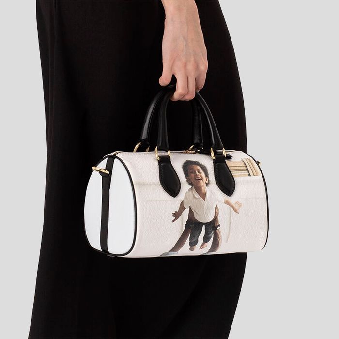 La borsa formato mini bauletto con foto viene fatta a mano su ordinazione on-site dal nostro team di esperti. Dopo aver ricevuto il tuo ordine, la pelle viene accuratamente stampata con le tue foto. Dopo, il nostro team taglia, da' forma e cuce ogni pezzo di pelle per dare vita alla tua borsa barrel personalizzata. Infine, viene rifinita con tessuto scamosciato e i dettagli in metallo.