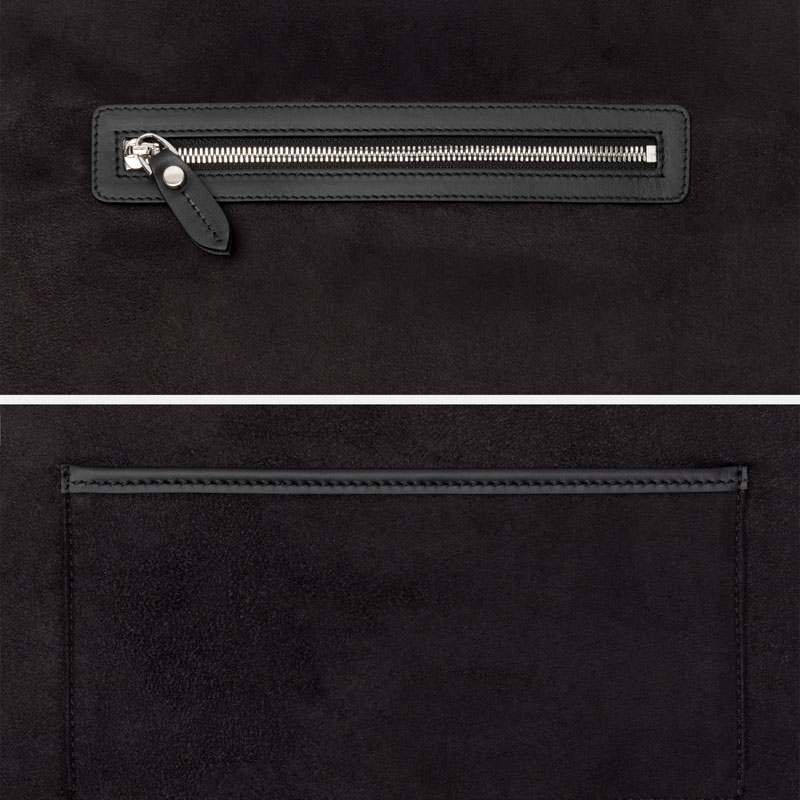 Mentre la struttura della borsa barrel personalizzata viene fatta in pelle di Nappa testurizzata, i suoi dettagli vengono realizzati in pelle di Nappa liscia di colore nero. Questi dettagli includono i manici, la striscia laterale, le parti delle cerniere, gli anelli a D e la finitura attorno ai bordi, per creare un look uniforme, indipendentemente dalle foto o i disegni utilizzati. La tracolla, fatta in tessuto resistente nero, è rimovibile e può essere regolata da 93cm a 147.5cm.