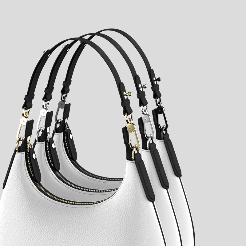 La tracolla, le linguette laterali, il tiretto della zip e l'inserto attorno alla borsa vengono realizzati in morbida pelle Nappa di colore nero. I dettagli completano la pelle da te scelta.