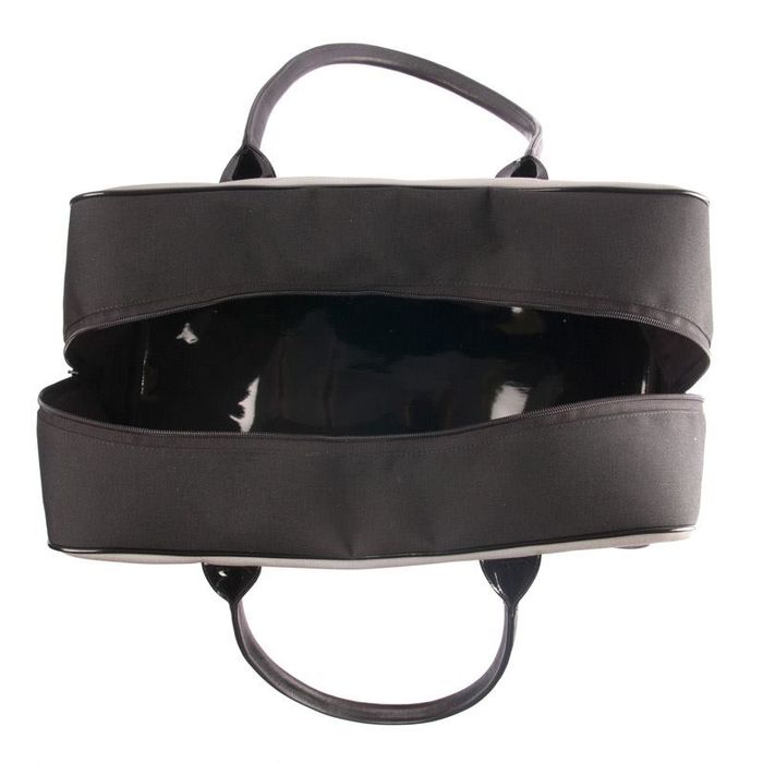 Grande: 33 x 46 x 22 cm - munita di una tasca con chiusura a zip e di una tasca aperta su lato opposto. La fodera è in tessuto scamosciato ignifugo.