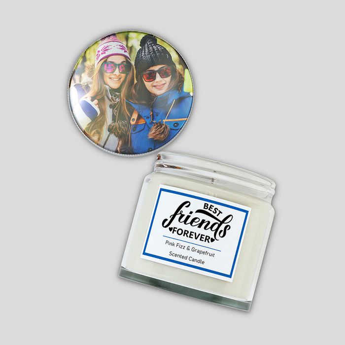 Per le candele in barattolo personalizzato sono disponibili due opzioni di personalizzazione. Il coperchio viene stampato direttamente sul metallo, mantenendo la lucentezza del materiale, proprio per questo non si possono stampare bianchi puri e qualsiasi bianco dell'immagine si mostrerà in colore argento. Ti consigliamo di utilizzare colori forti per una stampa alla massima definizione. Puoi anche personalizzare l'adesivo per un regalo completo e personalizzabile. Affinché la tua candela sia un desiderio, aggiungi una scena felice, una foto o un luogo da sogno. Nota: l'adesivo e il coperchio avranno un colore diverso per la differenza dei materiale e della finitura lucida o opaca. L'adesivo avrà toni più dolci, e sarà più evidente con colori scuri.