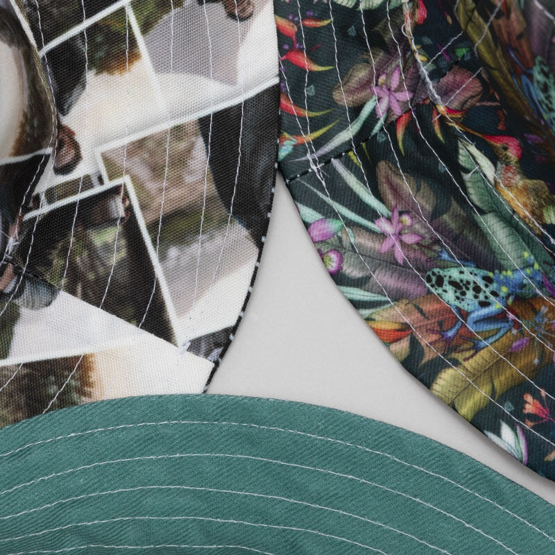 Ogni cappello pescatore personalizzato viene stampato digitalmente sul tessuto prescelto con inchiostri a base d’acqua. I pannelli stampati vengono poi tagliati e cuciti a mano dai nostri sarti esperti, che rifiniscono il bordo con una caratteristica cucitura a spirale. Grazie al design reversibile puoi cambiare stile in un secondo: da un lato un motivo camouflage, dall’altro un pattern grafico o il tuo logo aziendale.