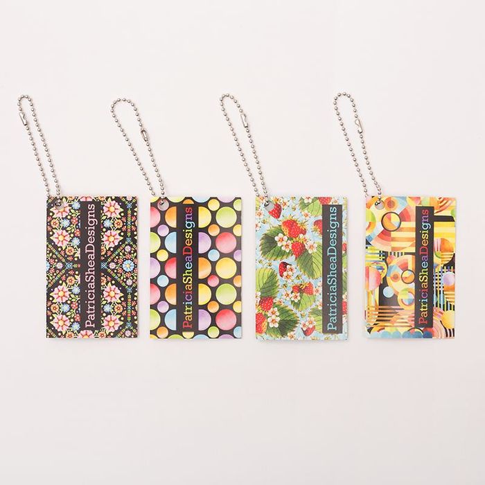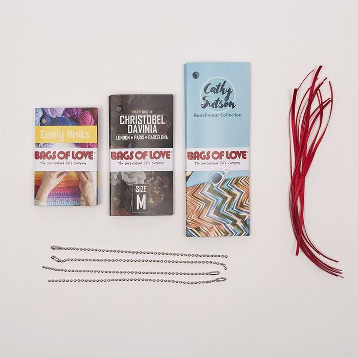È possibile selezionare lo stesso disegno o uno differente per l'esterno e l'interno dei cartellini e inoltre, puoi anche aggiungere testo sui disegni per ulteriori informazioni. I cartellini prezzi sono disponibili in tre misure, e in confezioni diverse a seconda delle dimensioni dei cartellini. Scegli tra una confezione da 9 cartellini piccoli (ognuno da 55 x 85 mm), una confezione da 6 cartellini medi o un pacco da da 6 grandi. Per quel tocco in più professionale, scegli tra quattro opzioni di finitura. Una catenella in nichel, una catenella in acciaio antiruggine, un sottile nastrino rosso o semplicemente solo etichetta con foro.