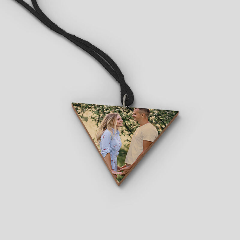 I gioielli in legno sono di gran moda in questo momento! Un accessorio classico intramontabile da aggiungere ad un semplice oufit. Fatto in legno di alta qualità e rifinito con una texture sbrinata per mantenere la stampa come nuova. Per la tua collana in legno personalizzata scegli qualsiasi foto da indossare con orgoglio e crea infiniti look. Durante la creazione della collana con foto su legno è fondamentale considerare la forma, la misura e i colori. Per forme complicate, come possono essere il trangolo o il cerchio con foro, è necessario prestare attenzione ai margini di stampa al posizionare l'immagine. In questo modo ti puoi assicurare che elementi importanti del tuo disegno non vengano tagliati via e sei soddisfatto del risultato finale. Per il miglior risulatto, ti suggeriamo di mantenere le immagini centrate.