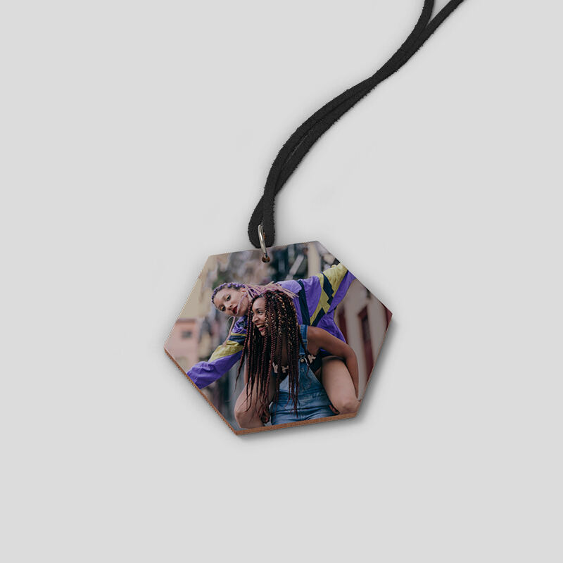 Stampa i tuoi preziosi ricordi ed indossali vicino al cuore con una collana in legno personalizzata e fatta a mano su ordinazione. Da foto di vacanze, a foto dei tuoi bambini, a un'immagine di coppia, puoi stampare i tuoi scatti preferiti sul ciondolo in legno. Scegli la forma che più preferisci, seleziona la lunghezza del cordoncino e goditi le infinite possibilità di stile.