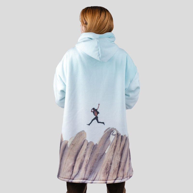 Scarta calore e ricordi con la nostra coperta con cappuccio personalizzata. Ti presentiamo la nostra creazione esclusiva: la coperta in pile unisex con cappuccio, super confortevole e con tasca frontale.