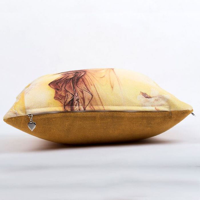I tuoi disegni vengono stampati direttamente sul tessuto scelto, utilizzando una tecnica specializzata. Gli inchiostri sono fusi in profondità nelle fibre, creando una stampa duratura che non si spezzerà né si staccherà, a differenza di altri metodi di stampa. La zip è cucita all'interno, dove viene aggiunto un ciondolo a cuore in metallo per un tocco in più di glamour. I tuoi cuscini personalizzati sono imbottiti con una spessa imbottitura e le nostre esperte sarte, poi, cuciono a mano il tessuto per una finitura eccellente.