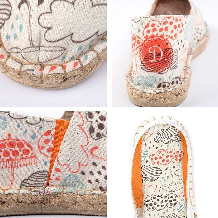 Le espadrillas personalizzate sono fatte artigianalmente stampato e creato interamente dai nostri artigiani, facendo uso di una tecnica di stampa a sublimazione ecologica, atossica e resistente ai lavaggi. La tomaia, il tallone e il design della soletta viene stampato separatamente, tagliato su misura e cucito a mano alla suola di corda di iuta dai nostri esperti tecnici.