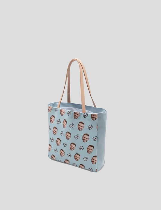 La tua shopper bag con il volto è realizzata a mano su ordinazione. Stampata, tagliata e cucita, tutto a mano qui nella nostra struttura di Londra. La rifinitura è realizzata in vinile beige avorio, azzurro, rosa tenue o nero. La stampa è priva di texture e non lascerà una brutta finitura sulla tua borsa liscia.