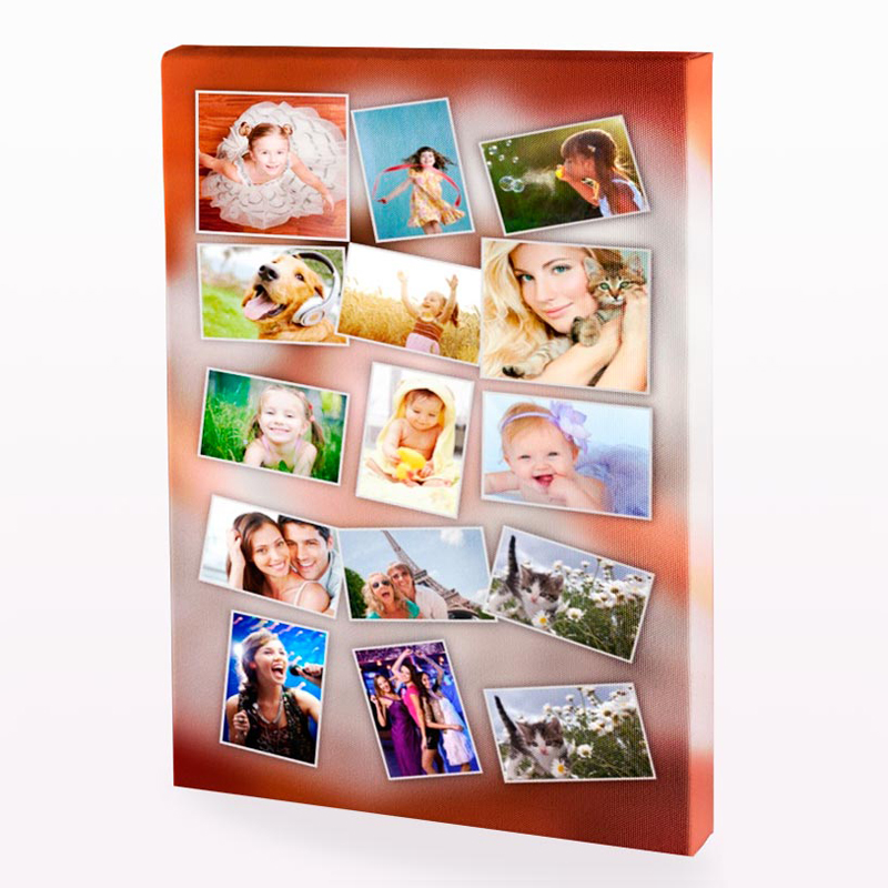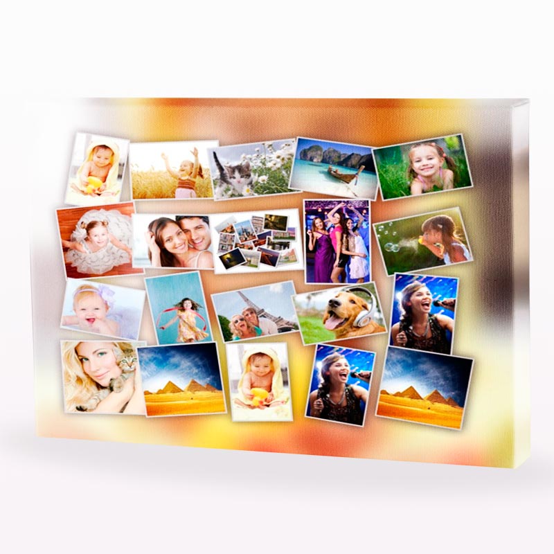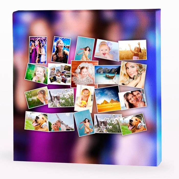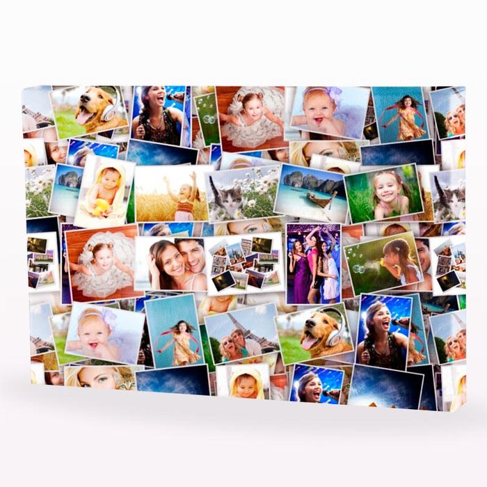 Raccogli tutte le foto che non ti stancheresti mai di guardare e crea in pochissimi click un collage di foto stampato su tela fotografica.