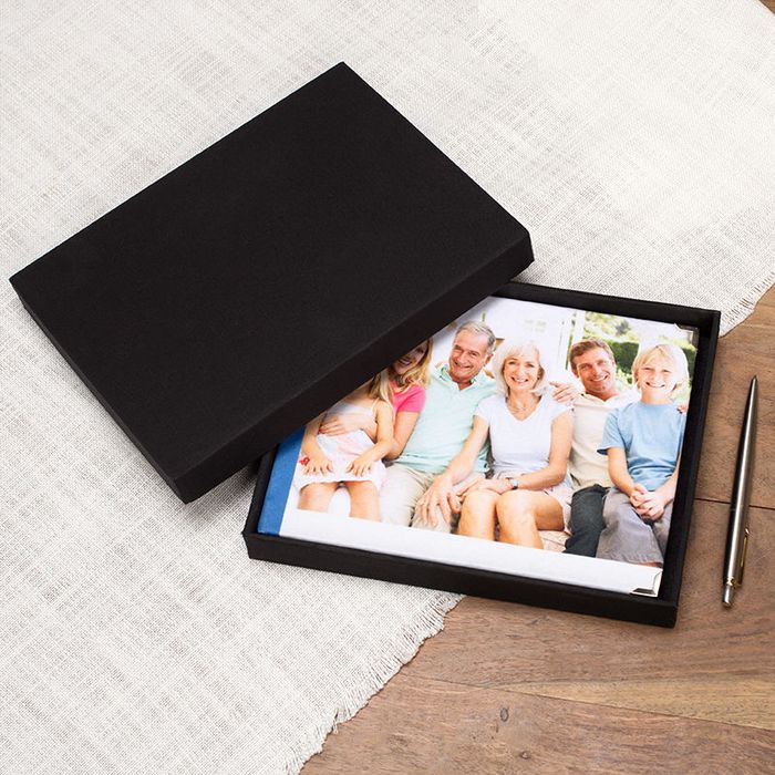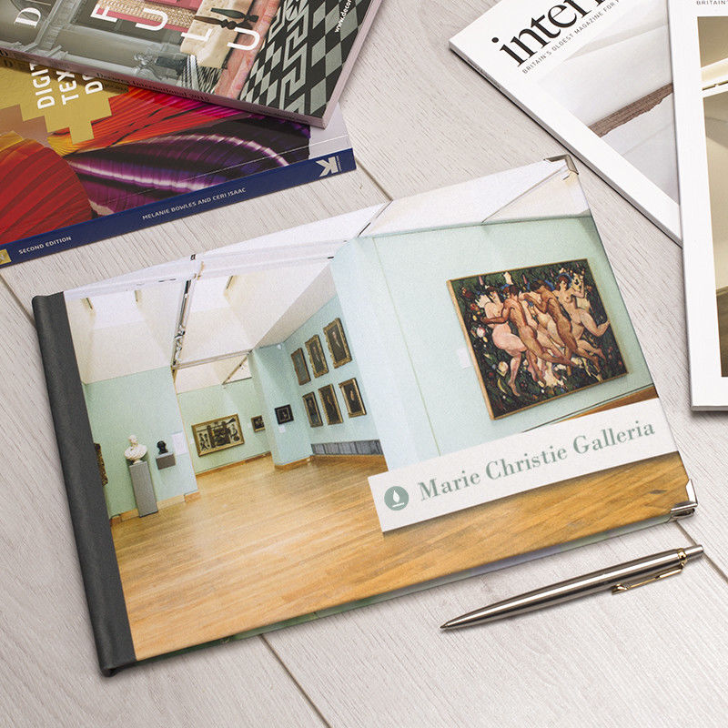 Stampiamo la tua immagine sul tessuto e lo avvolgiamo attorno al coperchio della scatola di presentazione, in modo che non solo il libro degli ospiti sia personalizzato, ma anche la scatola in cui viene fornito.