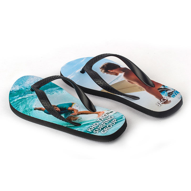 Per rendere le infradito personalizzate con nome ancora più uniche, inserisci il nome del bimbo su una ciabatta e una foto sull'altra. È un modo semplice per evitare scambi o smarrimenti a bordo piscina.