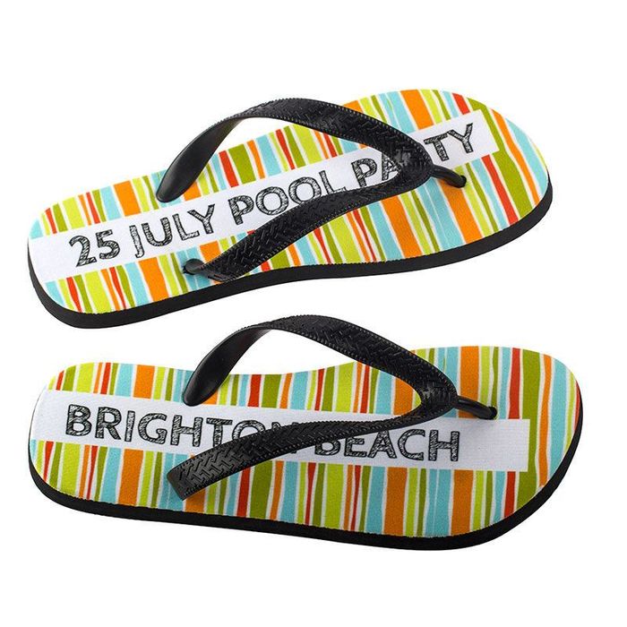 Se il tuo bambino frequenta le lezioni di nuoto regolarmente, le infradito personalizzate sono ideali in quanto sono facilmente riconoscibili e si distinguono dalle altre. Stampa il loro nome sul piede sinistro e il cognome sul piede destro, per un paio di ciabatte davvero originale.