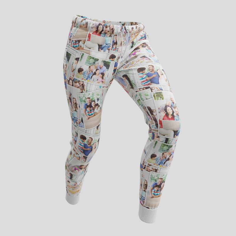 I pantaloni sportivi personalizzati sono fatti a mano su ordinazione presso la nostra struttura. I nostri esperti tecnici stampano le tue foto sul tessuto jersey da te scelto utilizzando innovativi metodi di stampa che garantiscono l'infusione profonda degli inchiostri nelle fibre del tessuto. Dopo che la stampa del tuo disegno viene realizzata sui joggers, i nostri sarti qualificati tagliano i pantaloni seguendo il modello creato esclusivamente su misura dai nostri designer.