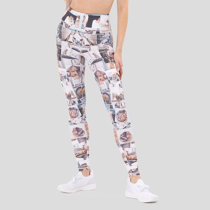Puoi personalizzare i leggings sportivi con foto, collage e illustrazioni. Se desideri stampare varie foto, ti suggeriamo di utilizzare un collage predefinito. I motivi e i disegni si mostrano in maniera eccezionale, specialmente sul girovita, perché la stampa potrà vedersi facilmente da ogni angolo.