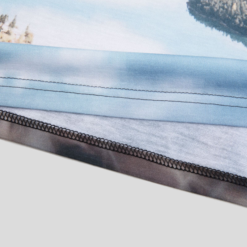 Sconsigliamo di cercare di allineare elementi di design dal davanti al dietro, come strisce orizzontali e cuciture intorno alle spalle. Cercheremo di allineare tutte le parti chiaramente continue del tuo design, ma non possiamo garantire una corrispondenza perfetta al 100%.