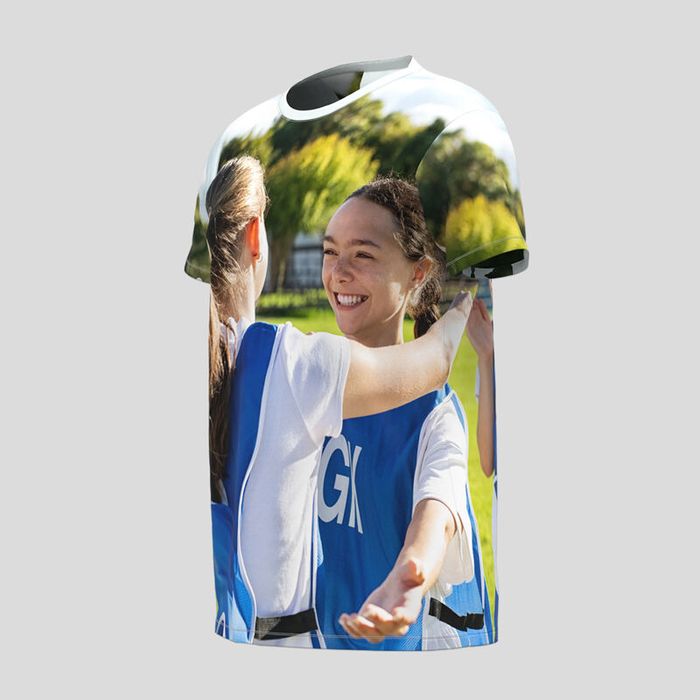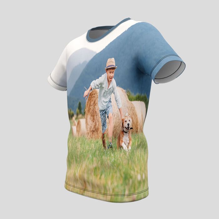 Il nostro speciale processo di stampa digitale concede alla T-shirt bambino con foto una stampa profonda e di lunga durata. Ti consigliamo di optare per disegni che non hanno bisogno di essere allineati su entrambe le parti, dal momento che non è sempre possibile, visto il modo in cui vengono prodotte le magliette. Le immagini vengono stampate su un pezzo di tessuto che, che viene poi tagliato in maniera accurata, dando forma alla parte frontale, la parte posteriore e le maniche. I pezzi vengono poi cuciti a mano dai nostri esperti artigiani per creare qualcosa di veramente unico. Queste opzioni di disegno danno ai tuoi ragazzi l'opportunità di stampare due disegni totalmente differenti.