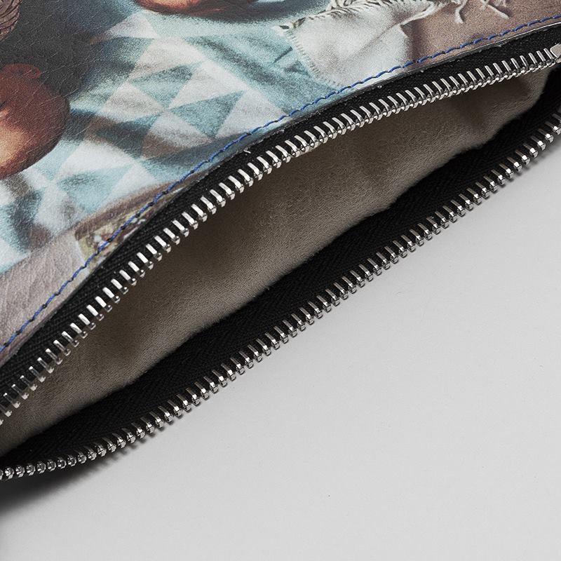 La nostra interfaccia di disegno online ha molti strumenti utili per aiutarti a disegnare proprio come piace a te la tua pochette in pelle personalizzata. Puoi caricare una singola foto o utilizzare più immagini e creare un collage. Puoi anche caricare un ritaglio di una faccia o un logo e utilizzare lo strumento di ripetizione del motivo per coprire con esso l'intera area di stampa.