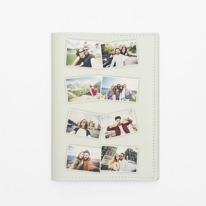 Mostra le foto dei tuoi viaggi con un collage di foto in un porta passaporto in pelle o eco-pelle. Inserisci qualche immagine dei timbri di entrata/uscita vecchio stile, lungo le tue foto per dargli un effetto retro. Potrai scegliere anche di realizzare una custodia passaporto per uomo in pelle per abbinarsi con il suo portafoglio.