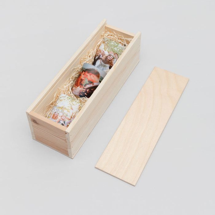 L’area stampabile è una striscia che avvolge il portacandele, perciò un panorama o una grafica orizzontale funzionano a meraviglia. Puoi anche creare un collage aggiungendo foto quadrate affiancate.