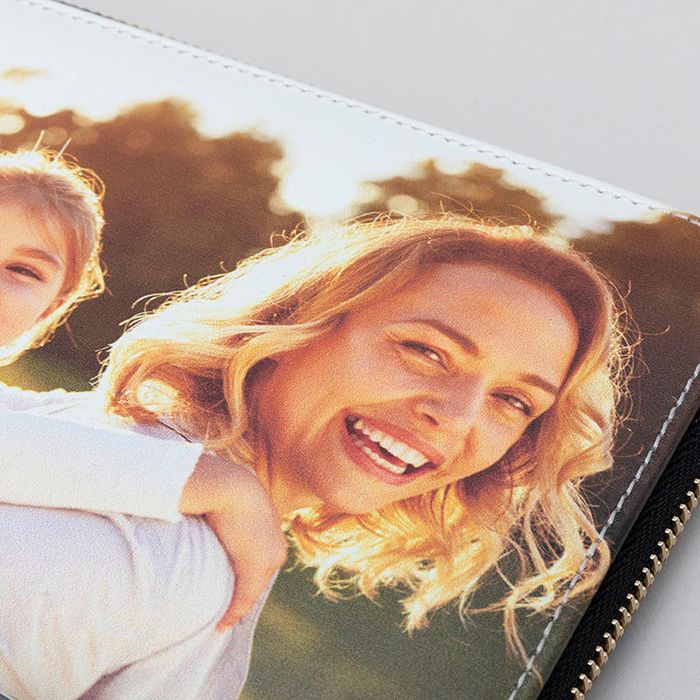 I disegni floreali o a mosaico appaiono incredibilmente alla moda e la cosa migliore è che nessun altro avrà il tuo stesso borsellino. Concedi vita alle foto di famiglia dimenticate e dai ai tuoi cari un borsellino personalizzato con dei ricordi felici. Puoi anche personalizzare il portafoglio con il segno zodiacale di tua madre e aggiungere del testo.