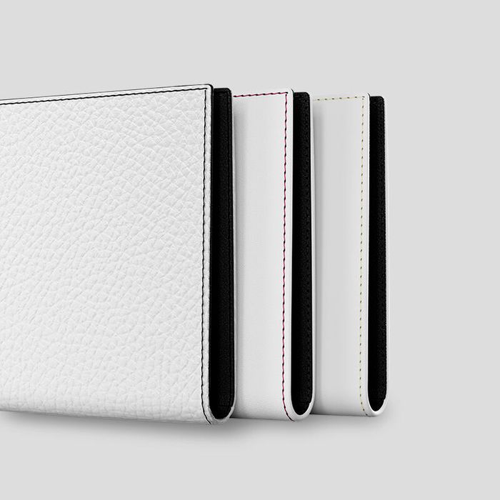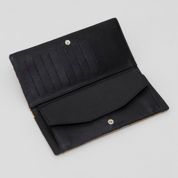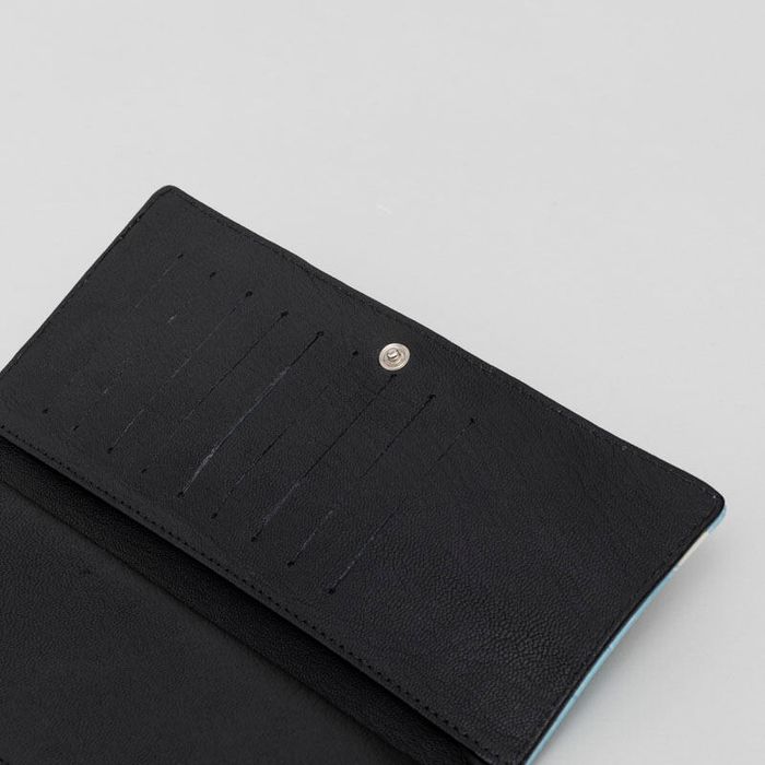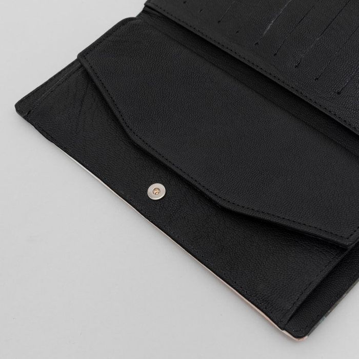 L'interno dei portafoglio viaggio con foto è rivestito in pelle nera di capra.