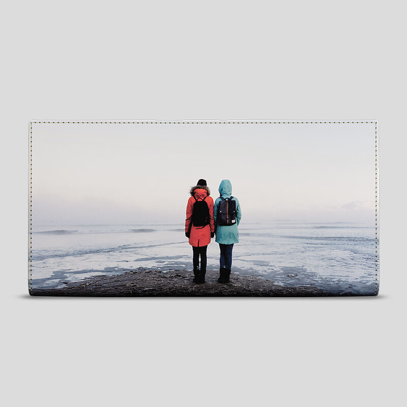 Puoi personalizzare entrambi i lati del portafoglio da borsetta separatamente, oppure come una striscia, ideale per i collage di foto. Per un design audace, crea un collage di foto utilizzando divertenti scatti per le vacanze o immagini di punti di riferimento di fama mondiale. Basta caricare e selezionare più immagini e scegliere tra gli stili di montaggio già pronti.