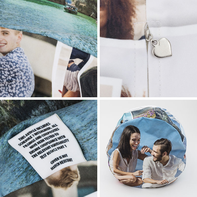 I copri pouf personalizzati vengono realizzati a mano, con un tessuto completamente rimovibile, creato da quattro pezzi di morbido e lussuoso tessuto scamosciato, un materiale così piacevole su cui sedersi e rannicchiarsi. I nostri tecnici esperti stampano le tue foto su ogni pezzo di tessuto prima che il nostro team di di artigiani cucia a mano il tessuto. La qualità di stampa è estremamente nitida, quindi i dettagli sono chiari e i colori vibranti. Non vorrai altro che toglierti le scarpe, prendere una coperta e sprofondare nella morbidezza del tuo pouf personalizzato alla fine di una lunga giornata.