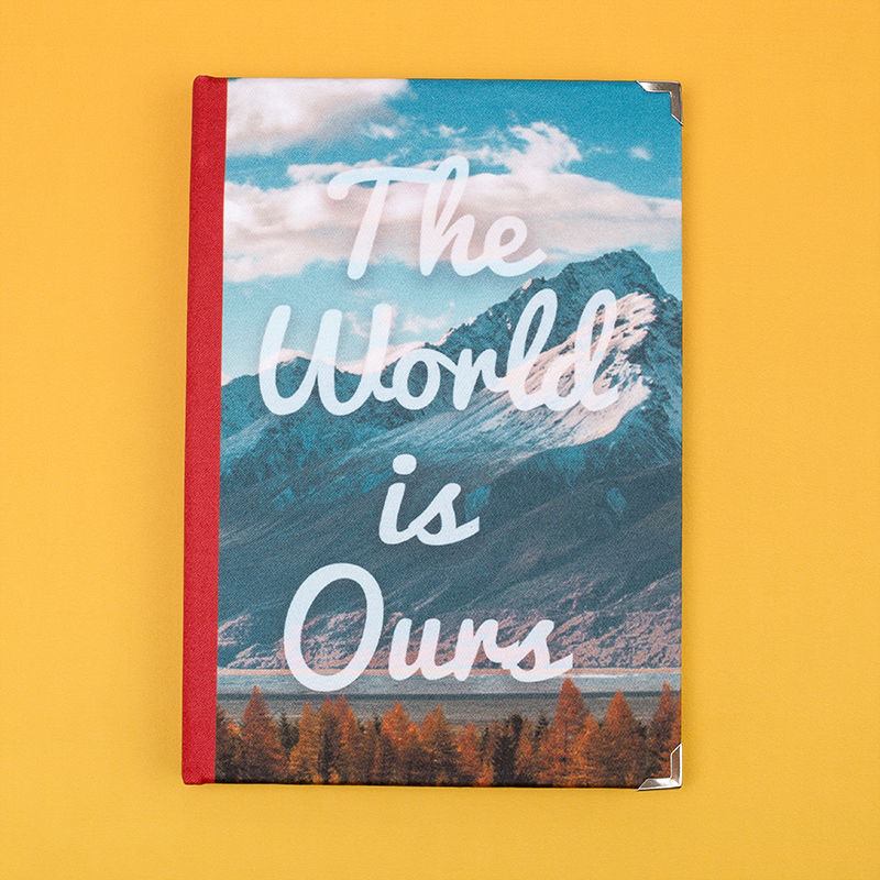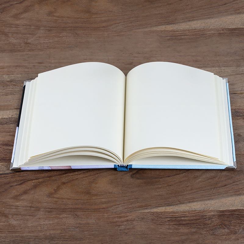 Stampiamo direttamente sulle fibre del raso Monroe, ottenendo colori vividi che non sbiadiscono. Dopo la stampa, la copertina viene rilegata a mano al blocco di 80 pagine in carta avorio. Scegli uno dei quattro colori per il dorso e aggiungi, se lo desideri, una grafica diversa sul retro. Completano il quaderno gli eleganti angoli in metallo.
