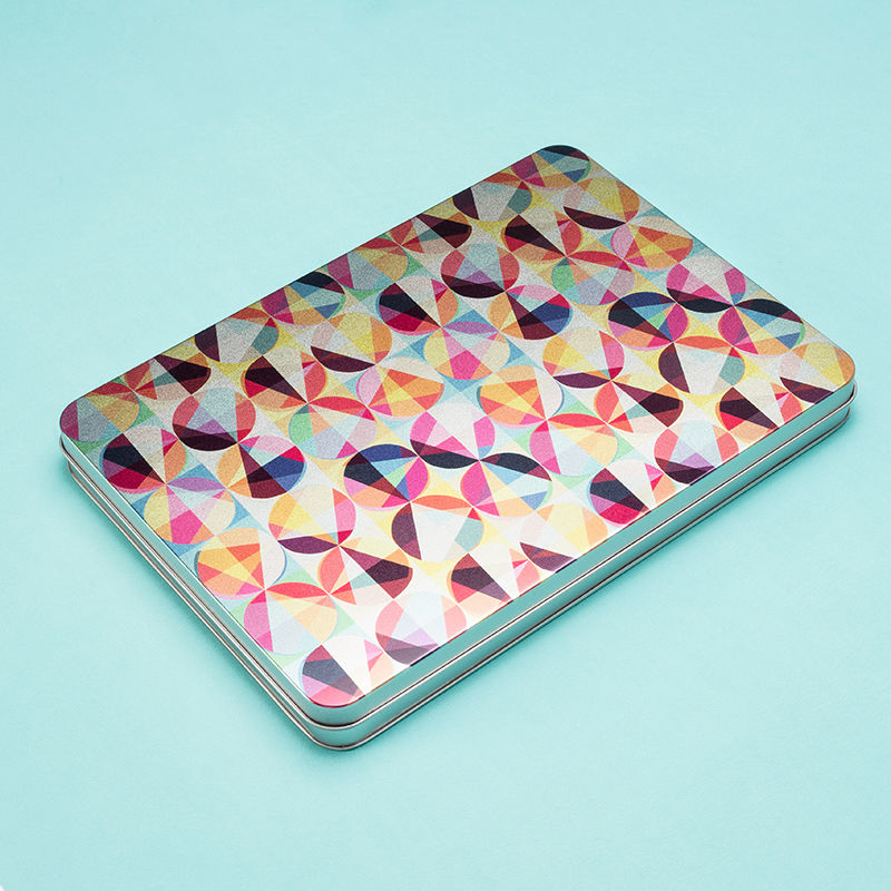Stampiamo disegni, foto o testo direttamente nel coperchio di metallo per creare la scatola di latta piatta personalizzata fatta apposta per te.