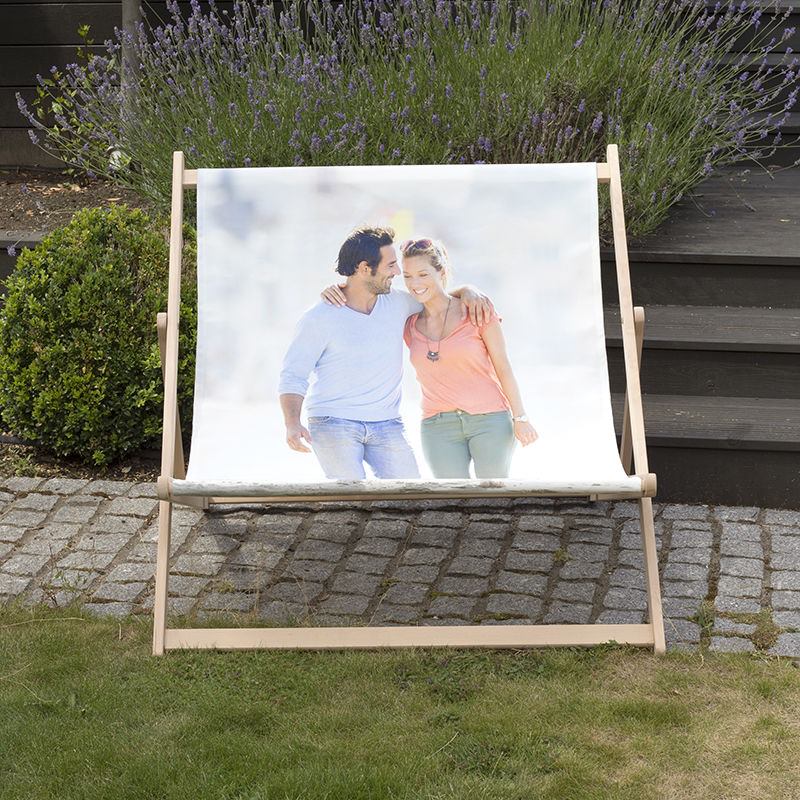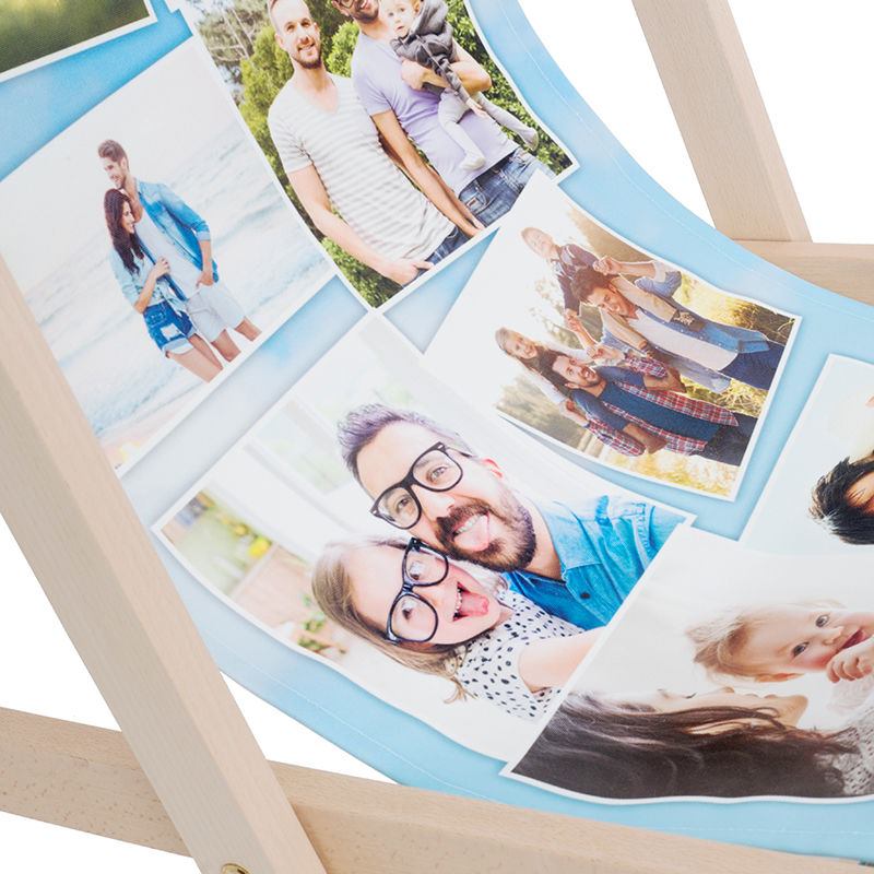 Progetta la tua sdraio personalizzata da giardino o spiaggia: leggera, pieghevole e stampata con foto, grafiche o logo aziendale.