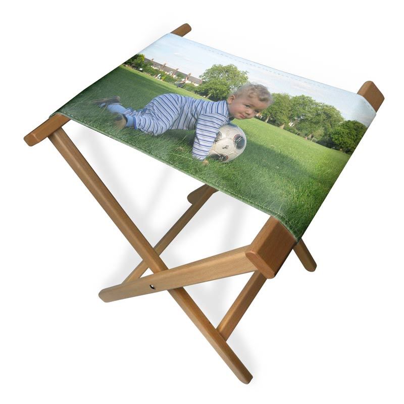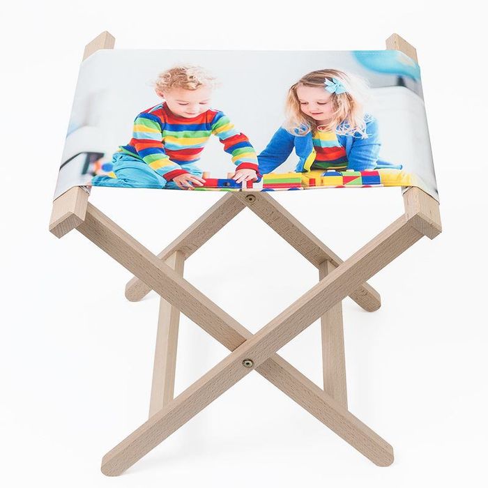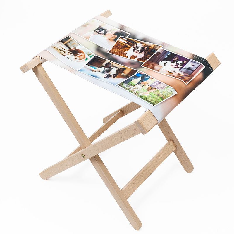 Crea un set di sgabelli pieghevoli personalizzati in legno con foto, nome o logo