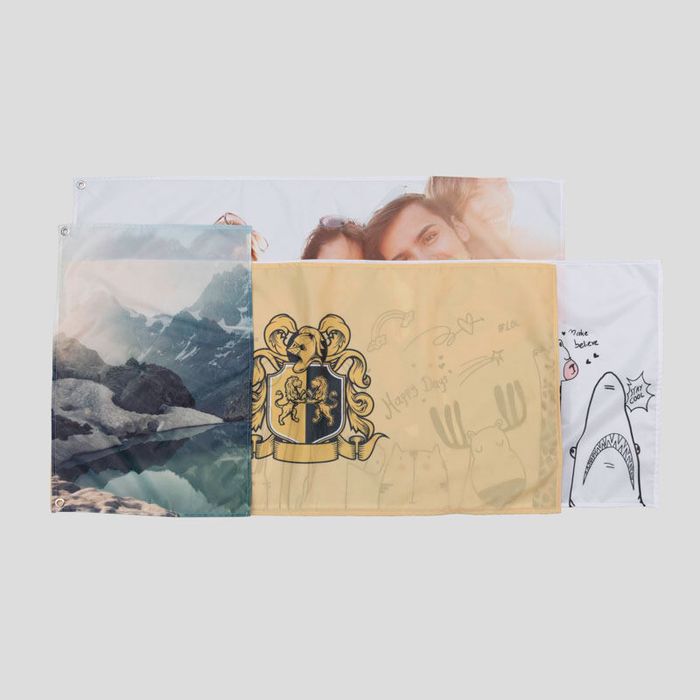 Scegli tra le nostre dimensioni standard o seleziona la nostra opzione di bandiere personalizzate per avere bandiere di qualsiasi dimensione e forma. Il nostro servizio è apprezzato per le bandiere da calcio, da rugby e olimpiche personalizzate per i singoli tifosi. Scegli tra la nostra selezione di dimensioni o tra le bandiere nazionali predefinite e usale come base per creare la tua bandiera aggiungendo messaggi, nomi, grafica o testo. Da una singola immagine a una bandiera in stile collage, stampa la tua bandiera con i nostri semplici strumenti di montaggio e visualizza in anteprima il tuo ordine per ottenere l'aspetto desiderato.