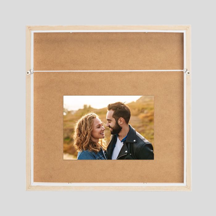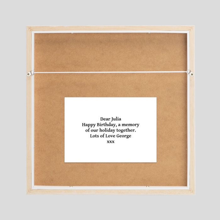 Se desideri inserire un messaggio sul retro del poster su tessuto personalizzato, hai due opzioni a disposizione. Un'opzione ti permette di aggiungere un adesivo matte formato A5. Un'altra opzione è una cartolina rimovibile formato A5, che viene inserita in una busta in Perspex attaccata sul retro della cornice, e la cartolina può scorrere dentro e fuori. Entrambe le opzioni offrono una completa personalizzazione, ideale se desideri lasciare un dolce messaggio alla persona amata.