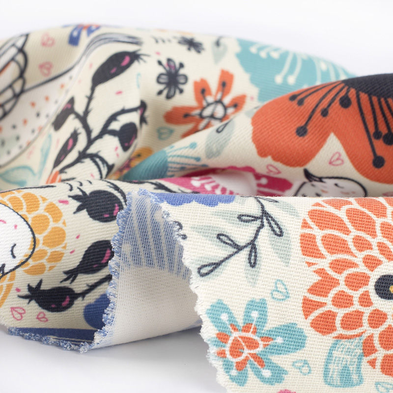 I nostri twill in simil cotone vengono stampati tramite un'innovativa tecnica di stampa chiamata sublimazione digitale. Questa tecnica permette agli inchiostri di penetrare all'interno delle fibre tessili (e non solo in superficie) per una stampa che non sbiadisce con l'uso o coi vari lavaggi. La riproduzione dei colori e dei dettagli è ottimale e non viene compromessa dalla trama diagonale in rilievo dei tessuti.
