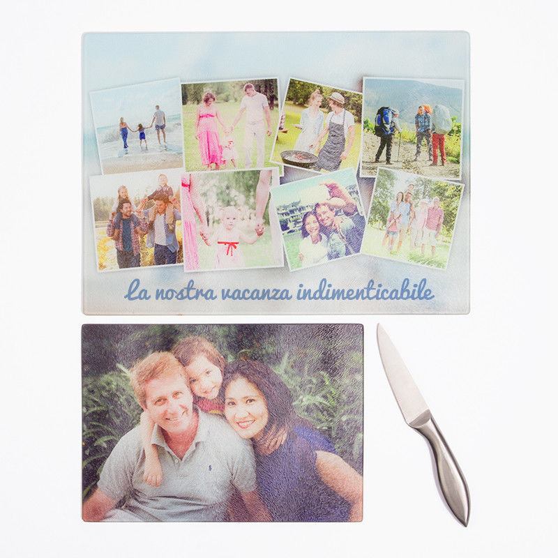 Un tagliere vetro personalizzato con foto, logo o dedica porta un tocco professionale e creativo alla tua cucina. Può essere usato ogni giorno per affettare pane, formaggi e salumi o come elegante vassoio da portata durante le cene con gli amici. Quando non lo utilizzi, esponilo sul piano di lavoro o su una mensola: diventerà un originale elemento d'arredo.