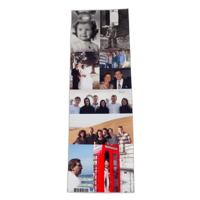 Scegli foto verticali oppure crea un collage direttamente online: l’area di stampa è 40,5 cm/89,5 cm x 124 cm. Ricorda che aggiungiamo un bordo specchiato, quindi mantieni gli elementi principali al centro. Per un effetto professionale inserisci il nome della tua attività o un pattern tropicale in alta risoluzione.