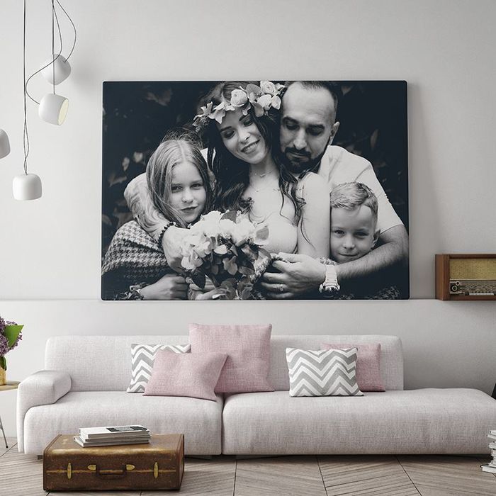 Una foto del tuo matrimonio stampata su tela personalizzata su misura è un momento da rivivere. Puoi anche aggiungere un filtro monocromatico o seppia alla foto per darle un'estetica vintage.