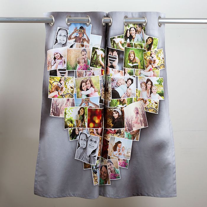 Puoi scegliere il colore di sfondo per le tue tende oscuranti personalizzate, anziché utilizzare il classico bianco, e il nostro strumento di progettazione include alcuni modelli di collage preimpostati. Invece di riempire le tende di foto da un bordo all'altro, crea un bellissimo collage di foto su uno sfondo colorato che si abbini all'arredamento della tua stanza. Questa è un'ottima idea se desideri tende personalizzate per più stanze.