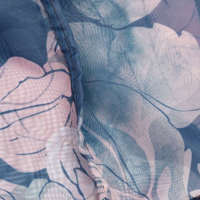 Le tende Voile possono facilmente essere utilizzate anche come divisorio tra due aree di una stanza se personalizzate con grandi stampe. Se desideri una maggiore privacy ti consigliamo di utilizzare una stampa ricca di dettagli. Data la natura trasparente della stoffa, i colori stampati sono leggermente smorzati, ma i dettagli sono chiari e definiti. I colori del fronte della stoffa sono più saturati rispetto a quelli visibili sul retro, che risultano più sbiaditi.