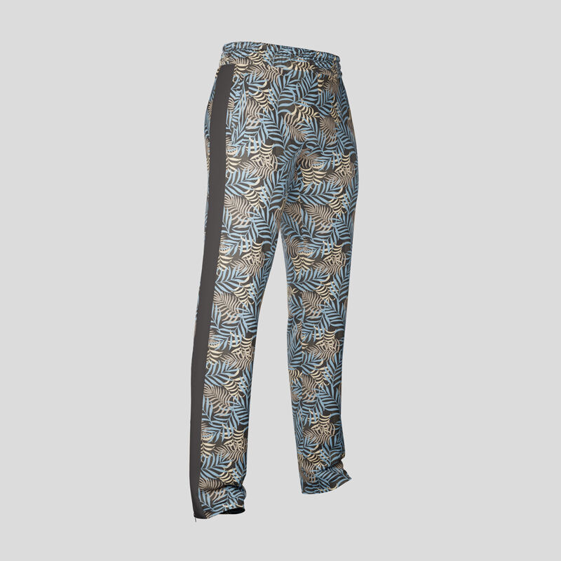 Vestibilità slim a vita bassa, elastico in vita e zip alle caviglie: tutto quello che serve per un look contemporaneo. Le due tasche frontali vengono stampate insieme al resto del capo. Puoi scegliere zip nera o bianca, che determinerà anche il colore del filo di cucitura. Disegna liberamente parte anteriore, posteriore e cintura; anche la banda laterale è in tinta unita a tua scelta. Perfetti per gli allenamenti, le corse mattutine o semplicemente per rilassarsi.