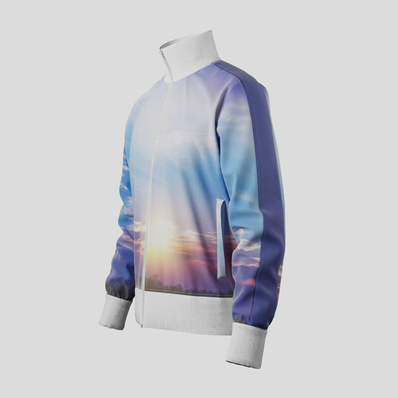 Per ottenere il massimo impatto visivo, usa immagini in alta risoluzione e sfrutta l’area di stampa all-over per creare motivi continui. Ricorda che, essendo un prodotto fatto a mano, non possiamo garantire la perfetta corrispondenza tra i pannelli (ad esempio ai lati della zip della giacca), ma faremo del nostro meglio per allinearli. Con colori scuri molto saturi, la base bianca del tessuto può essere leggermente visibile se estremamente tesa.