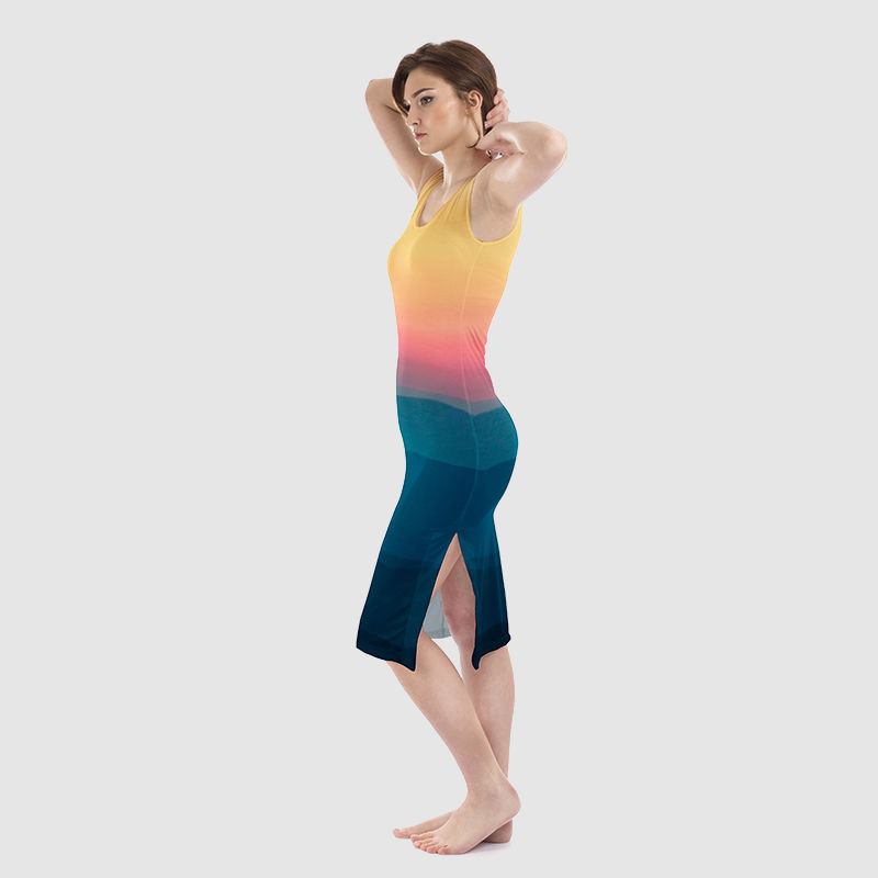 I vestiti senza maniche personalizzati è realizzato secondo il modello su misura creato dai nostri designer interni. I tecnici stampano il disegno sul tessuto scelto, utilizzando un metodo di stampa ad infusione che fonde gli inchiostri alle fibre del materiale.